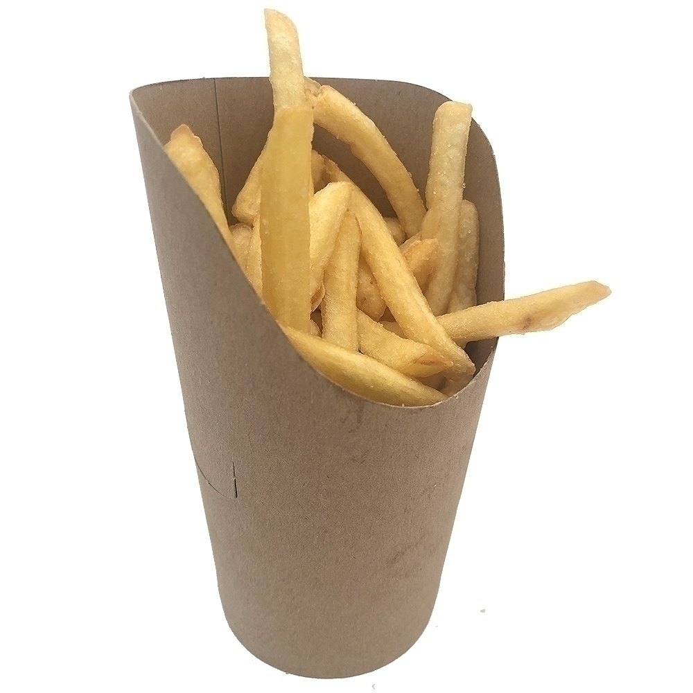 Papírový kelímek na hranolky IQ KRAFT o objemu 480 ml je určen pro servírování větších porcí hranolků, smažených příloh a street food pokrmů v gastronomických provozech, fast foodech, bistrech, kavárnách a provozech typu take-away. Větší objem je ideální pro plnohodnotné porce a kombinované pokrmy.